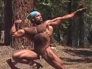 Big muscled gay working in the woods showing his hot body